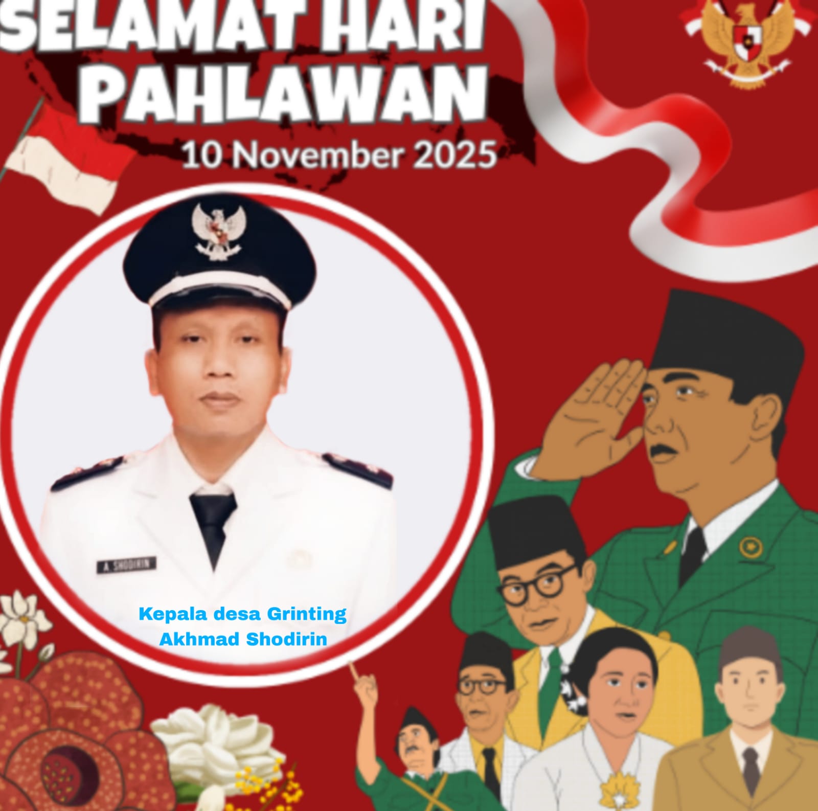 Sidoarjo, 10 November 2025— Kepala Desa Grinting, Kecamatan Tulangan, Sidoarjo, Akhmad Shodirin, bersama perangkat desa dan staf, memberikan apresiasi khusus pada peringatan Hari Pahlawan Nasional yang jatuh pada 10 November 2025.