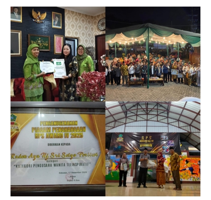 Sidoarjo — Menjelang berakhirnya tahun 2025, ajang RPS Award ke-IV kembali menghadirkan sosok-sosok inspiratif yang dinilai memberi kontribusi nyata bagi masyarakat. Salah satu figur yang mendapat sorotan utama adalah Raden Ayu Hj. Sri Setyo Pertiwi, yang dinobatkan sebagai Pengusaha Wanita Paling Inspiratif dalam malam penganugerahan di Pendopo Dispora Kabupaten Sidoarjo, Selasa (17/12/2025).
